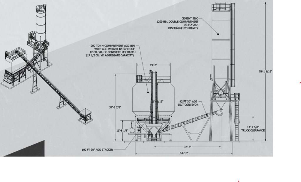 What weighing system is included? 8 load cells at 5,000 kg (10,000 lb) each for aggregates, plus 4 load cells at 2,000 lb each for the cement hopper, with digital weight indicators.