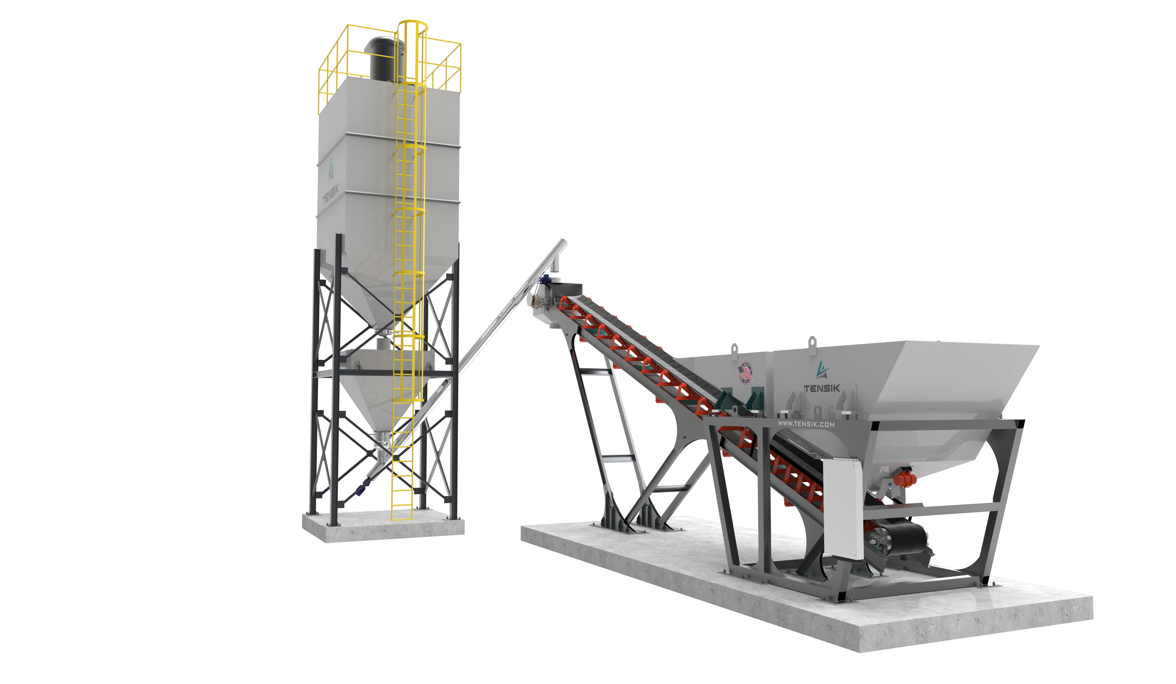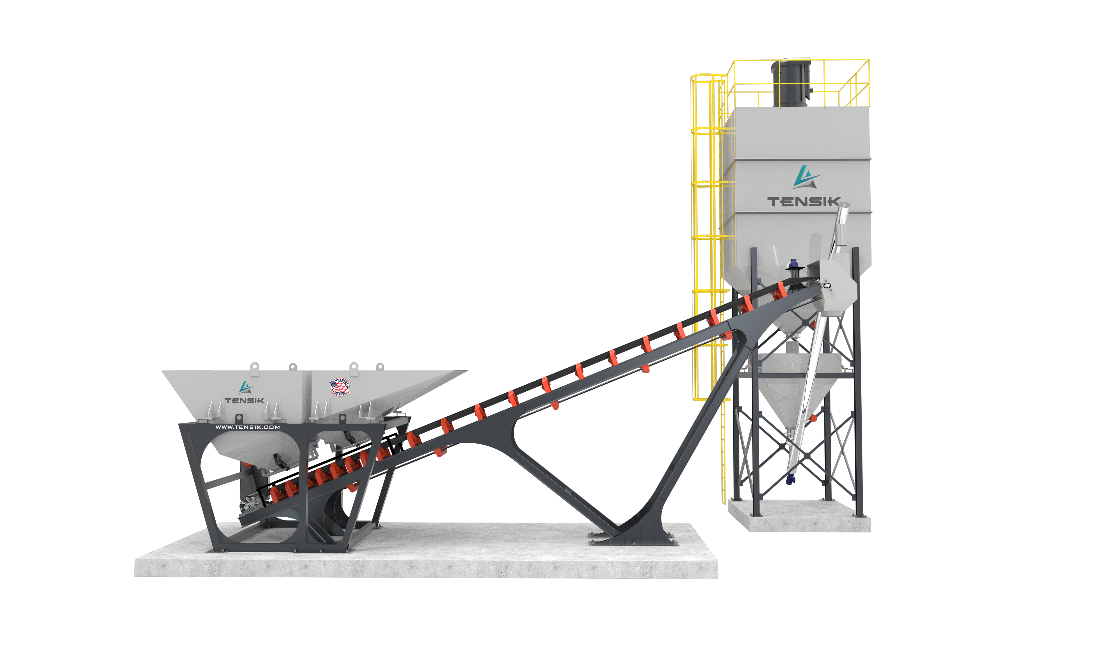 What is the aggregate hopper capacity? The TENSIK 60 includes 2 hoppers with 6.5 yd³ capacity each (8 yd³ total system capacity).